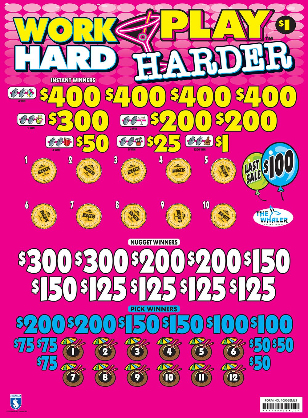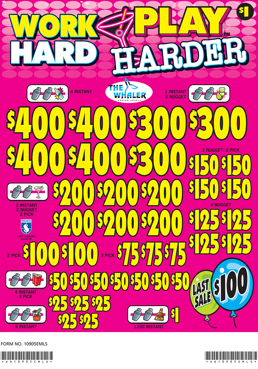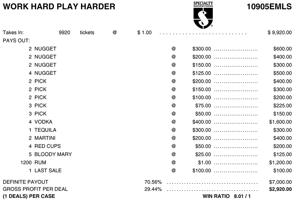 AN10905EMLS – WORK HARD PLAY HARDER ($1.00) EMBEDDED PULLBOARD