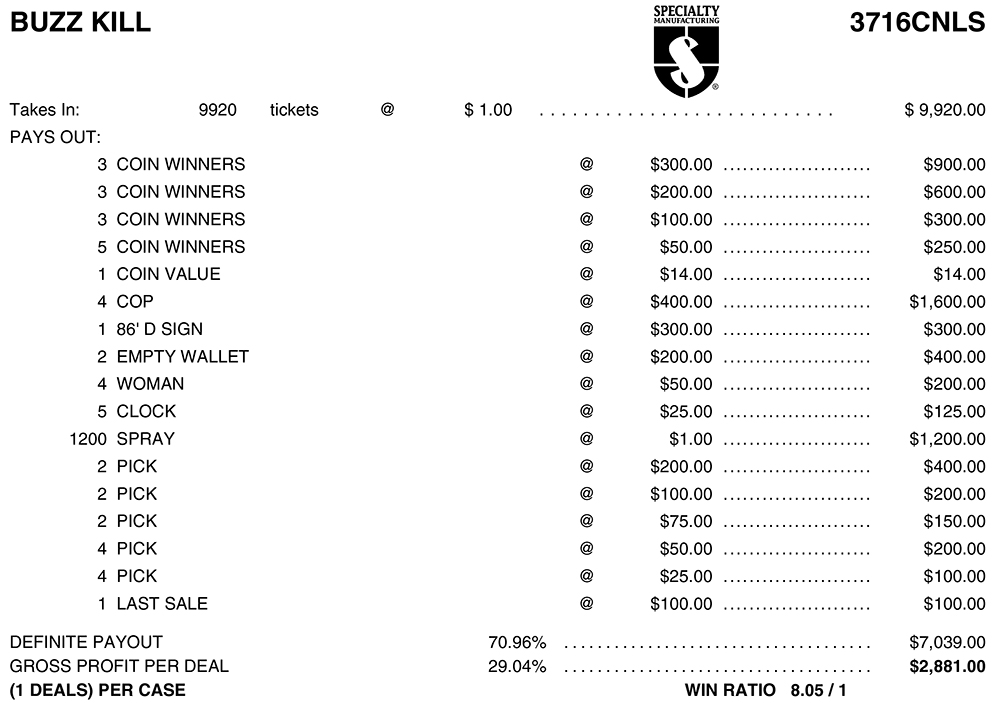 AN3716CNLS CB KIT – BUZZ KILL ($1.00) COINBOARD COMBO