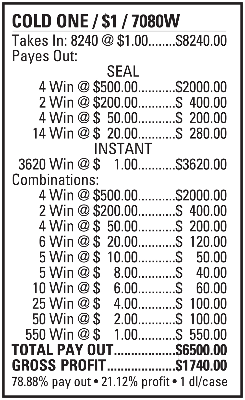 AN7080W – COLD ONE ($1.00) PULLBOARD