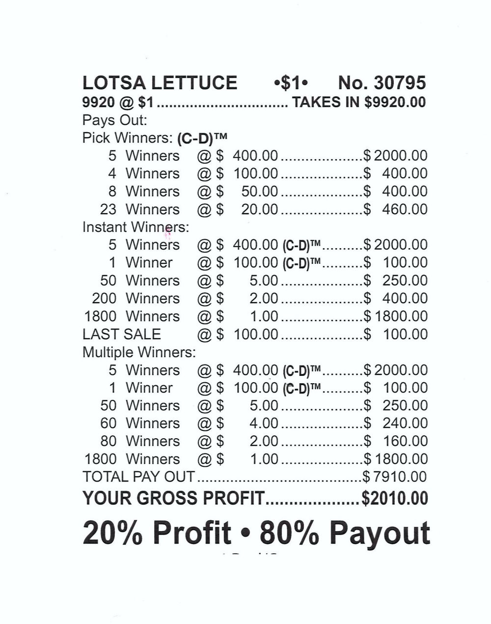 Prizes: $7,910.00