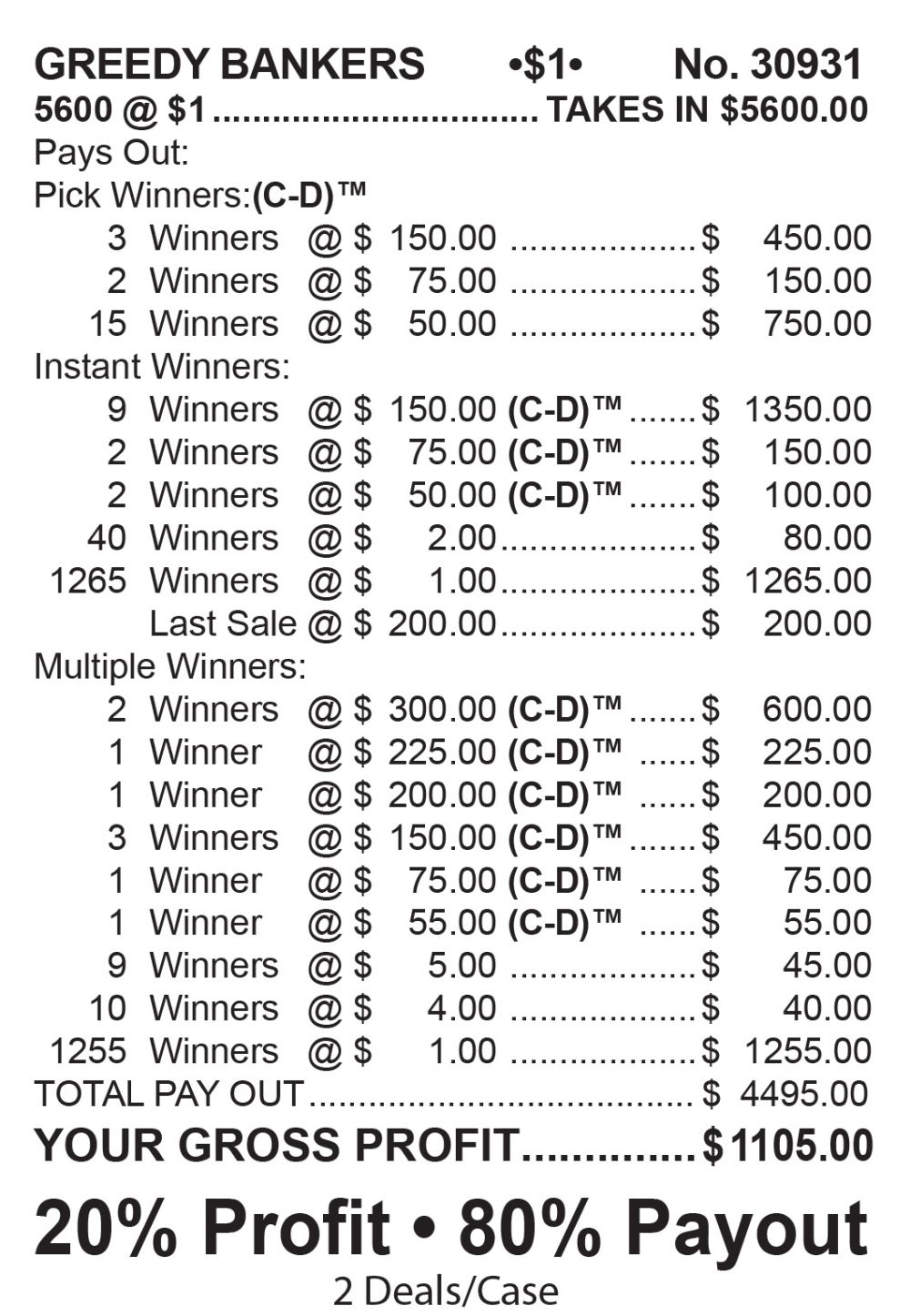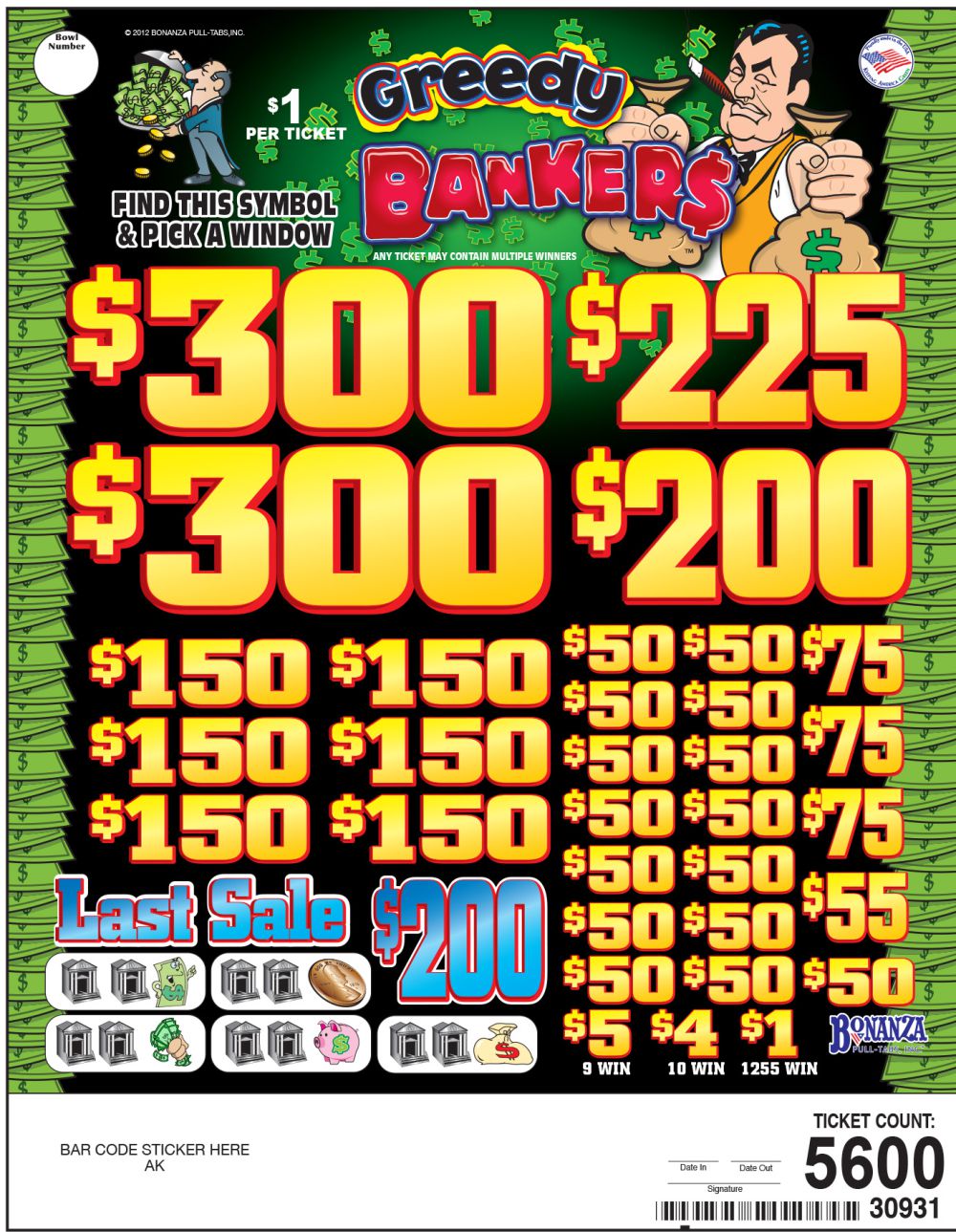 BP30931LS – GREEDY BANKERS ($1.00) PULLBOARD