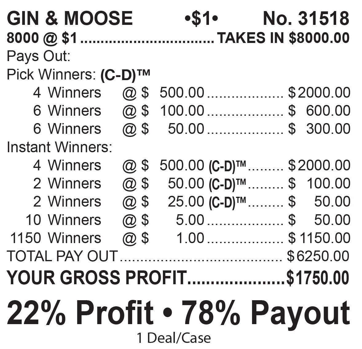 Prizes: $6,250.00