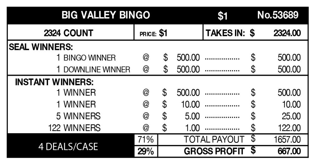 BP53689 – BIG VALLEY BINGO ($1.00) SEAL CARD