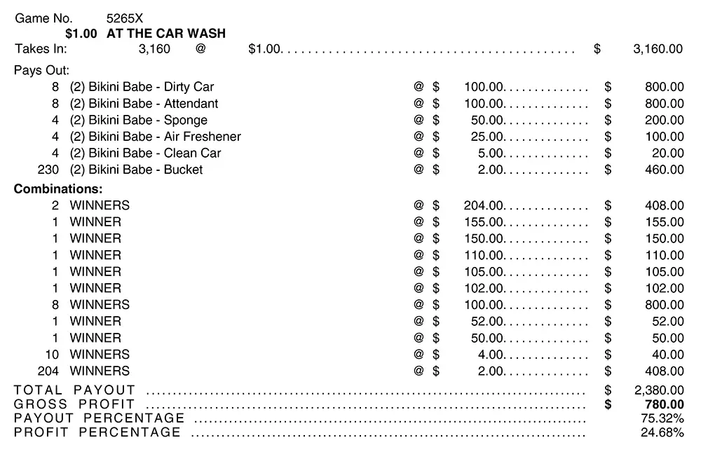 Prizes: $2,380.00