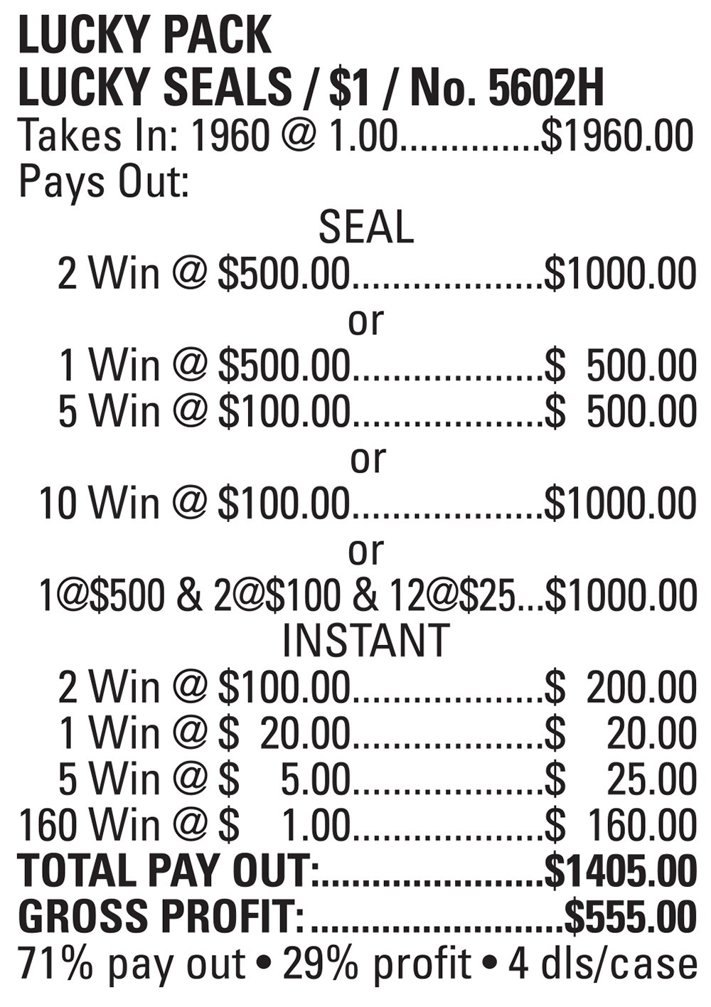 TP5602H – LUCKY PACK ($1.00) SEAL CARD
