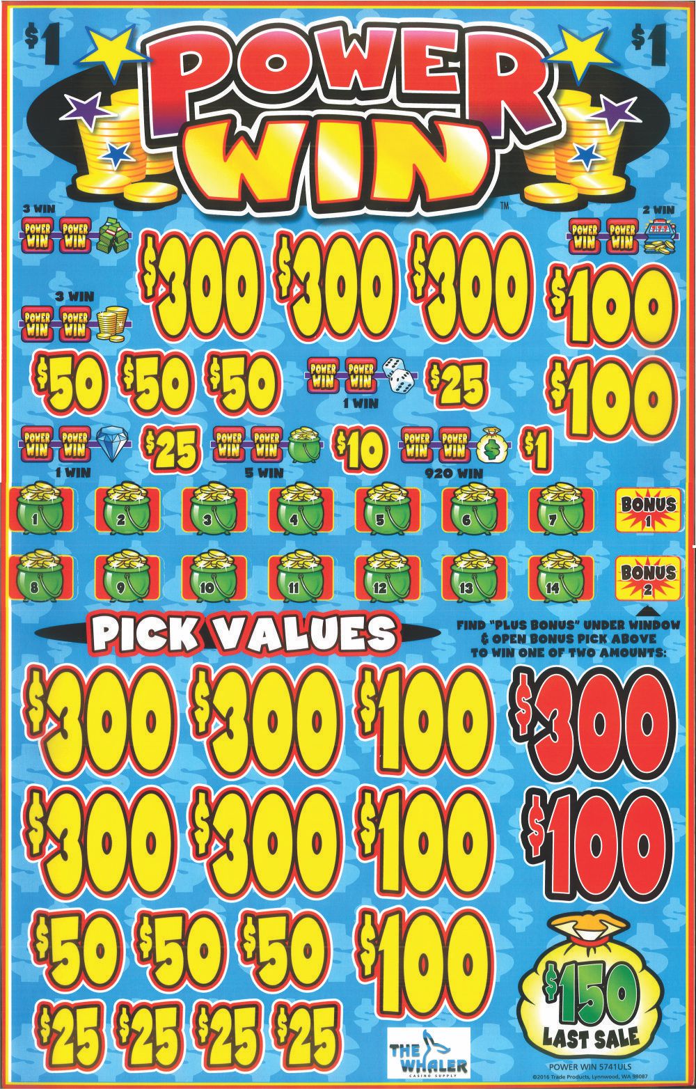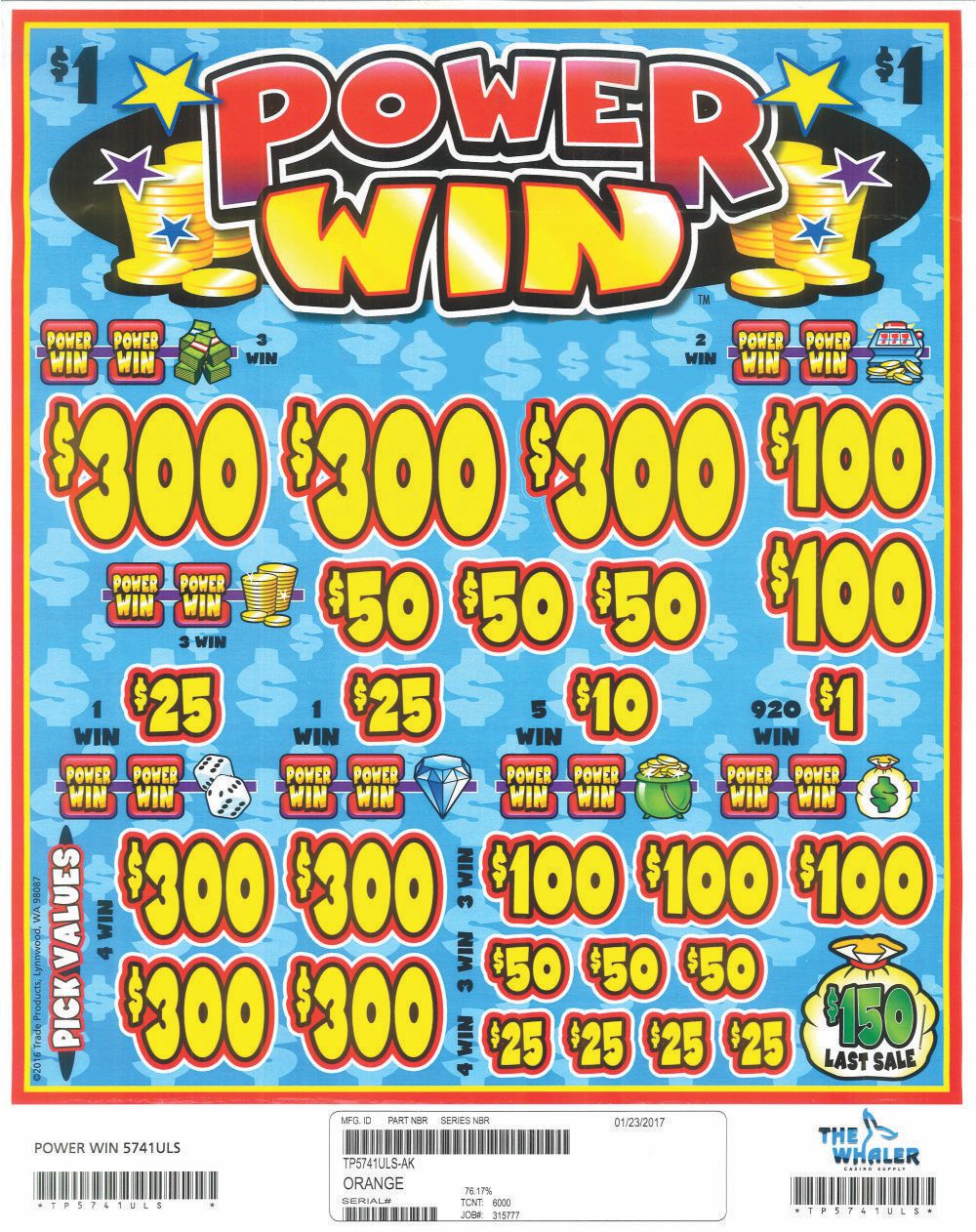TP5741ULS – POWER WIN ($1.00) BIG PIC PULLBOARD