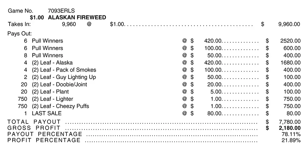 Prizes: $7,780.00
