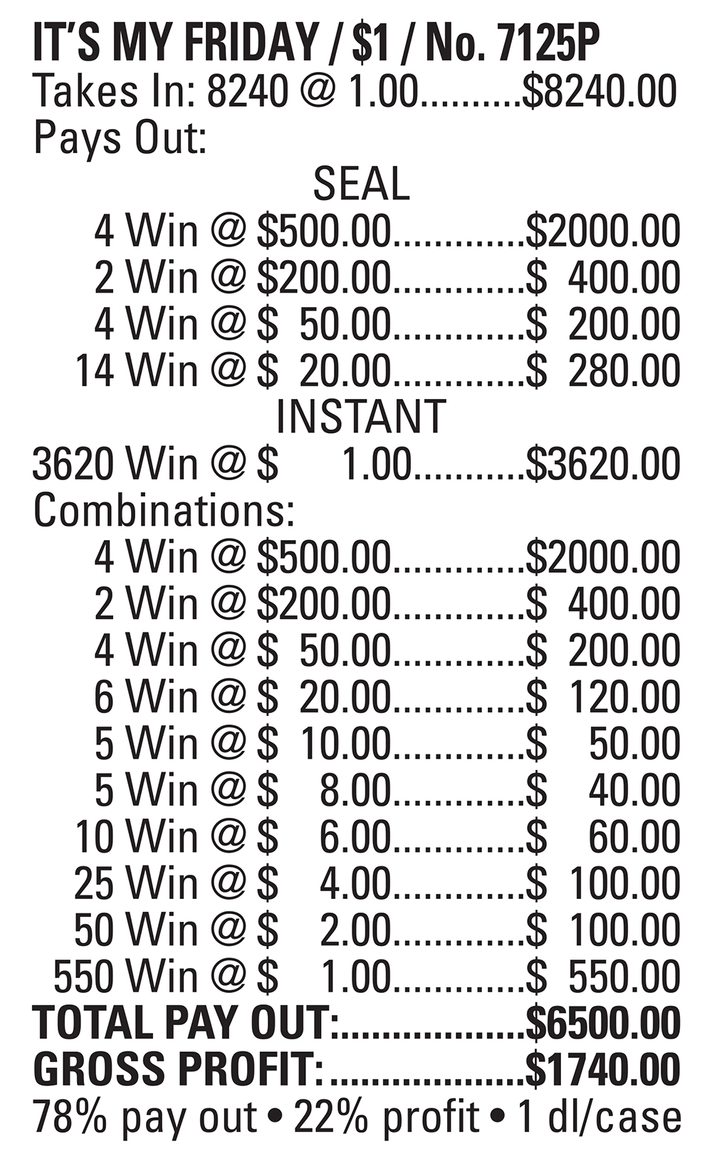 TP7125P – IT’S MY FRIDAY ($1.00) PULLBOARD