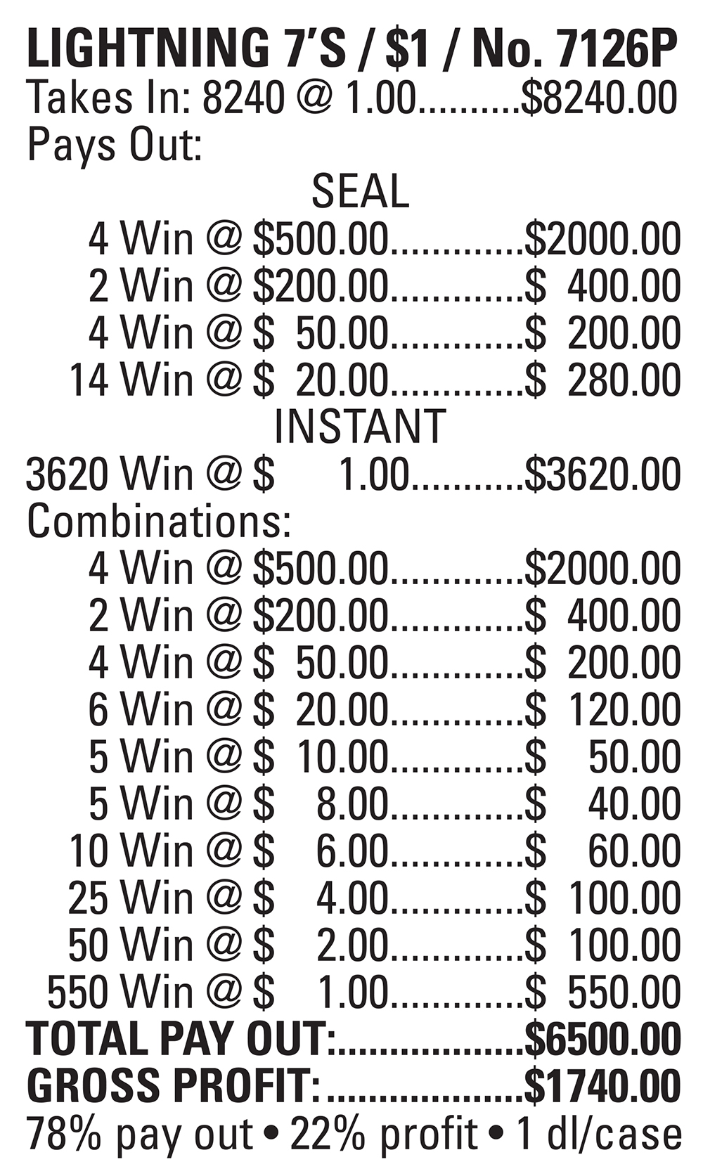 TP7126P – LIGHTNING 7’S ($1.00) PULLBOARD