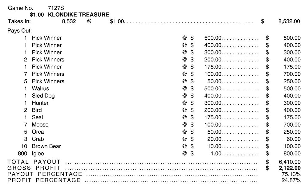 TP7127S – KLONDIKE TREASURE ($1.00) PULLBOARD