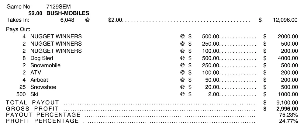Prizes: $9,100.00