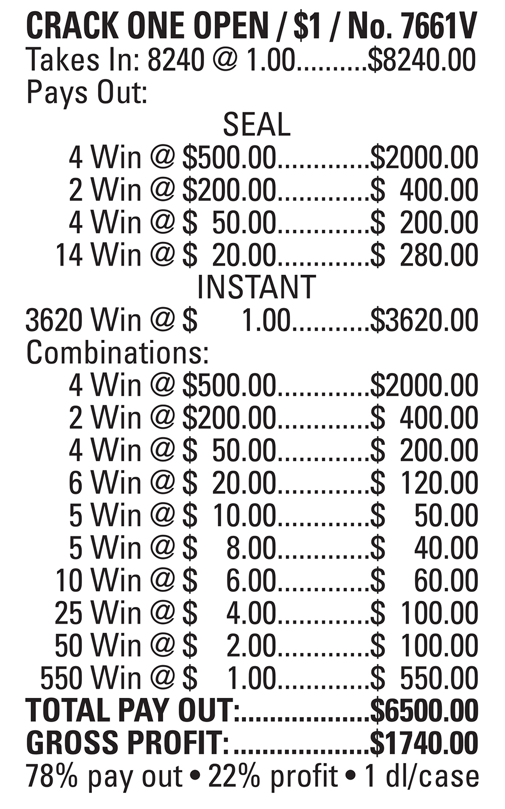 TP7661V – CRACK ONE OPEN ($1.00) PULLBOARD