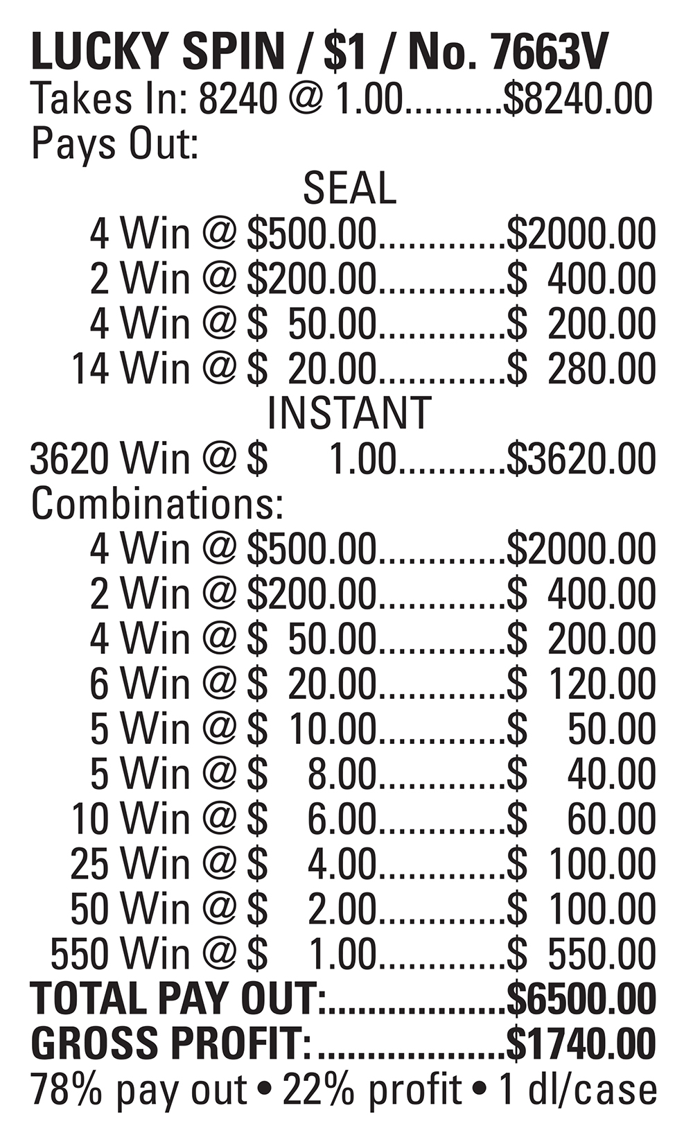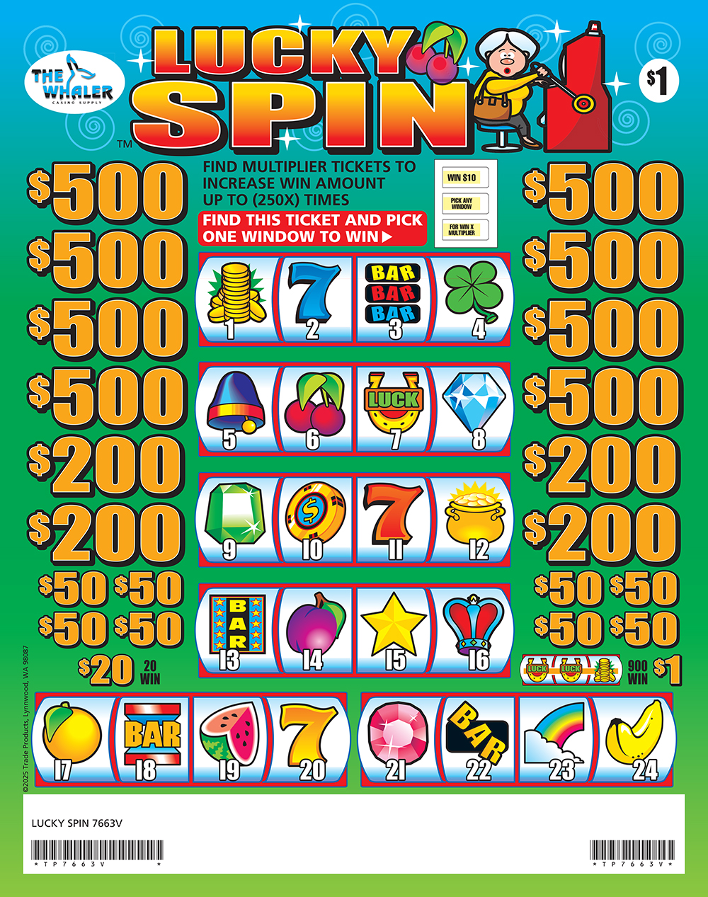 TP7663V – LUCKY SPIN ($1.00) PULLBOARD