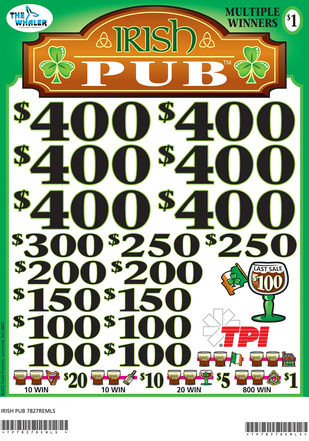 TP7827REMLS – IRISH PUB ($1.00) EMBEDDED PULLBOARD