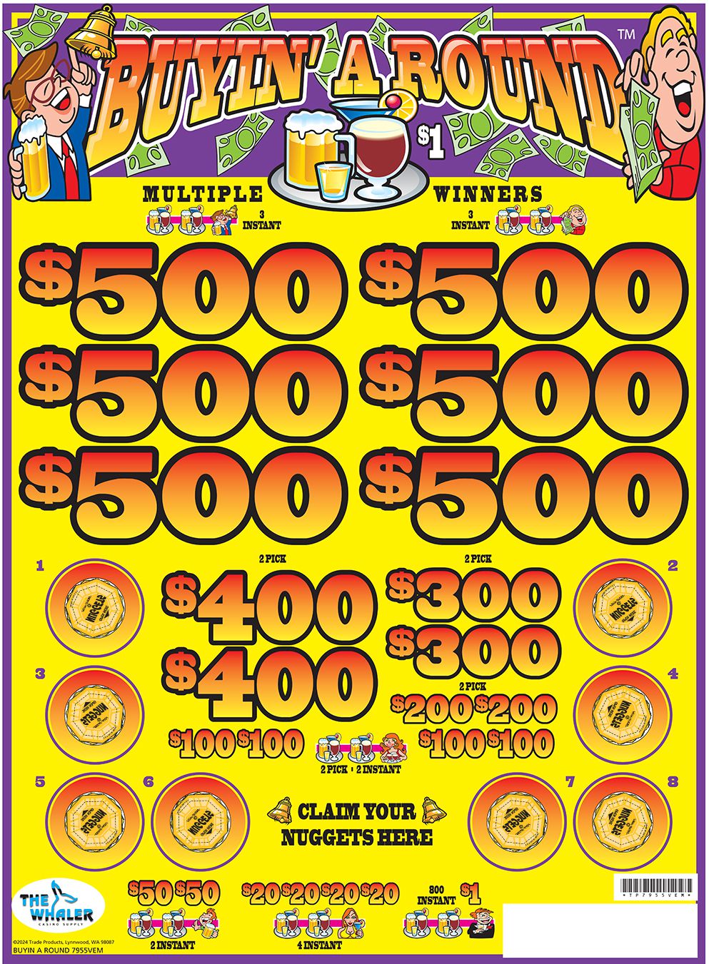 TP7955VEM – BUYIN’ A ROUND ($1.00) EMBEDDED PULLBOARD