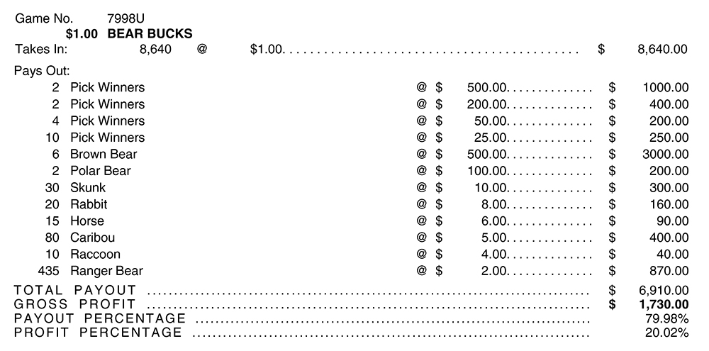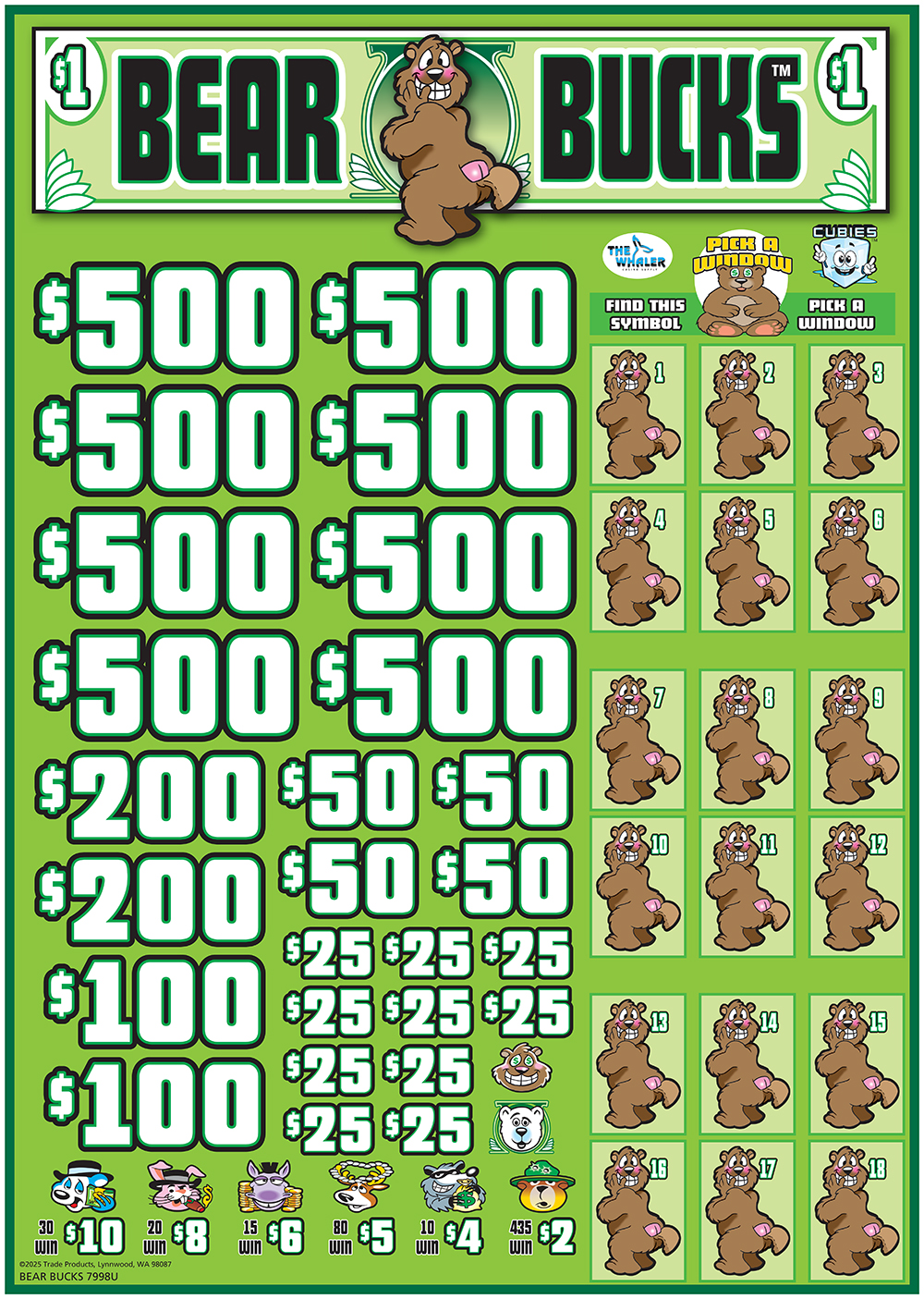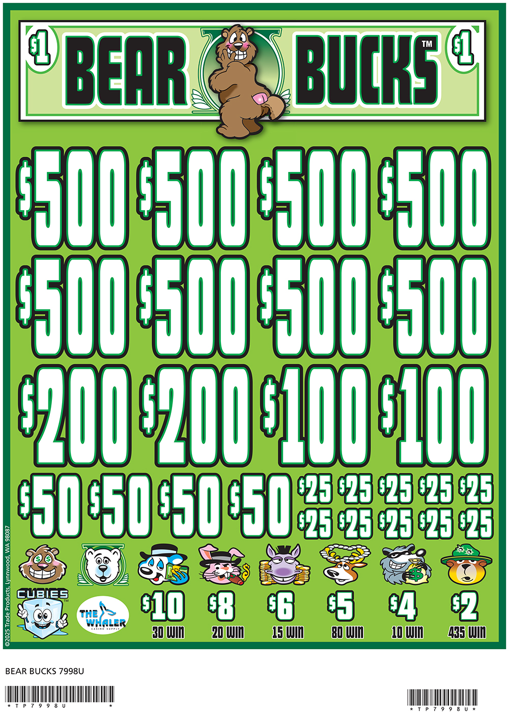 TP7998U – BEAR BUCKS ($1.00) BIG PIC PULLBOARD